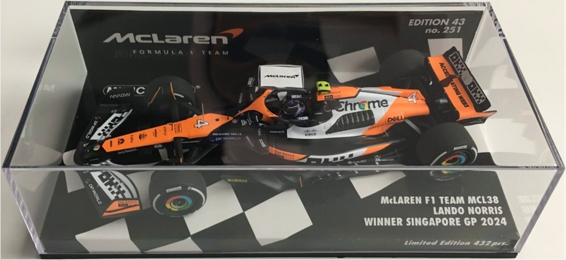 MINICHAMPS 1/43 537 246104 McLAREN F1 TEAM MC380 LANDO NORRIS WINNER SINGAPOLE GP 2024 LIMITED EDITION 432pcs
