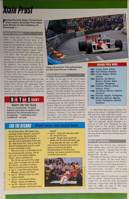PROST SIGNED PICTURE BIO 1987