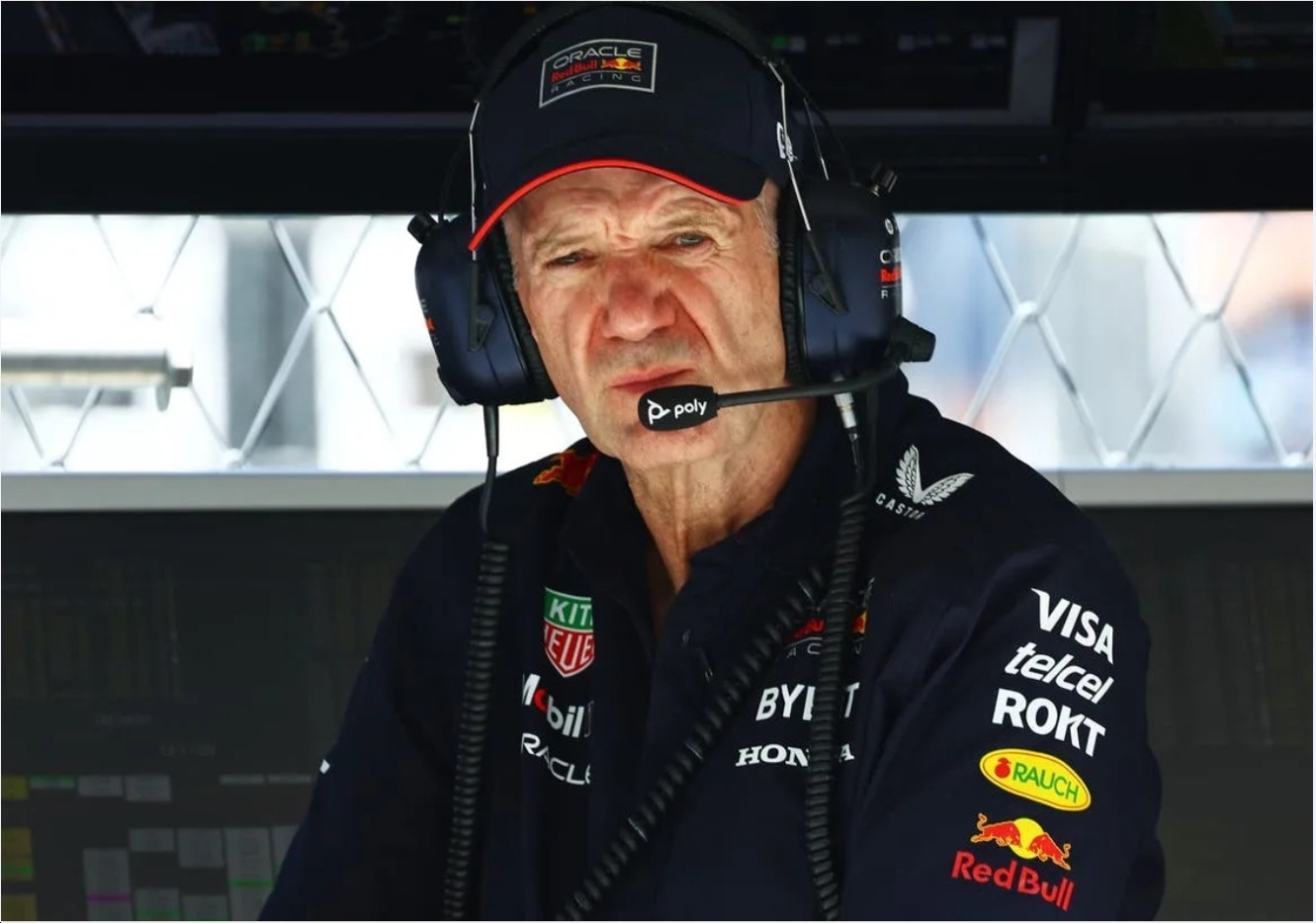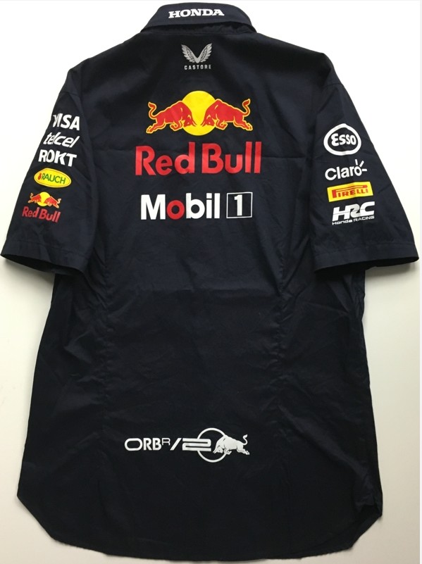 CASTORE 2024 ORACLE RED BULL RACING EXECUTIVE ISSUE PIT SHIRT for ADRIAN NEWEY PIT-SHIRT with VISA & ZIP CHEST POCKET.