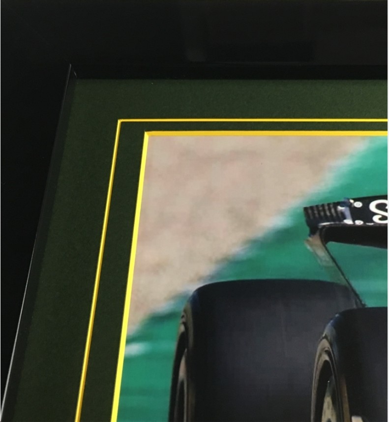 - サイズ : W41.5xH30.5xD1.5㎝ / 額:ピアノブラック x 2層マット:グリーン x Eイエロー & Vグルーヴ・ワイド加工+UVカットPET