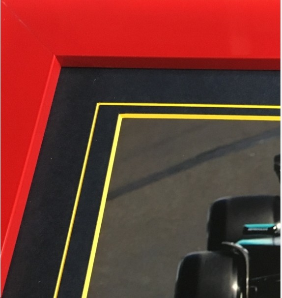 - サイズ : W34.5xH25.5xD1.5㎝ / 額:ウッド・レッド x 2層マット:ネイビー x Eイエロー & Vグルーブ・ワイド加工+UVカットPET
