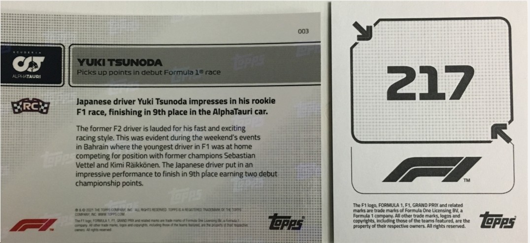 YUKI TSUNODA JAPANESE GP 2025 ORACLE RED BULL RACING DRIVERS PROMOTION LIMITED Ed. CARD+TOPPS x 2pcs