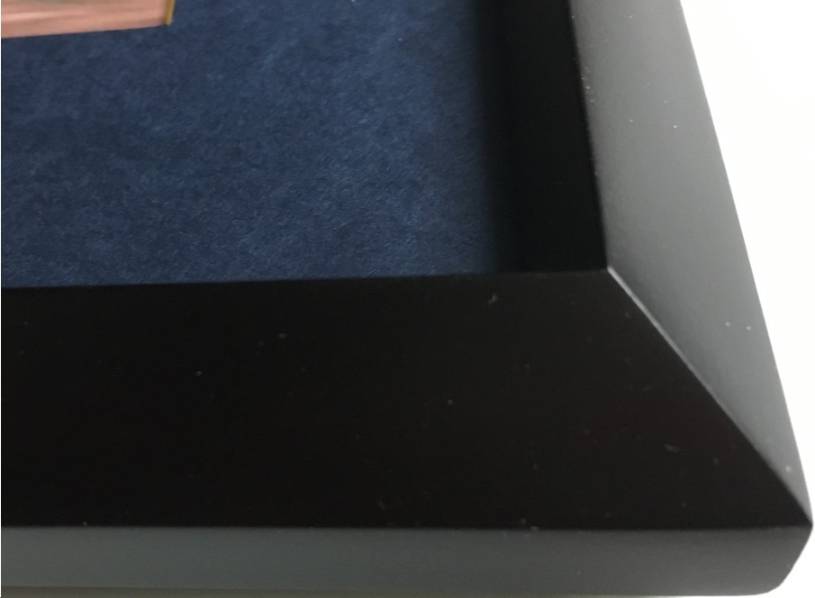- サイズ : W27.5xH22.5xD2.5㎝/木製高品質 x マット:ネイビー x イエロー & アクリルUVカット