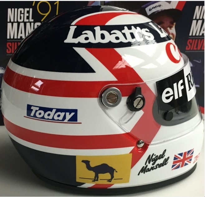 DRM Ed 1/2 Arai HELMET NIGEL MANSELL HAND SIGNED ON VISOR,1991 BRITISH GP "TAXI for SENNA" FULL LIVERY,with CERTIFICATE OF AUTHENTICITY FROM F1-SIGNATURESTORE
