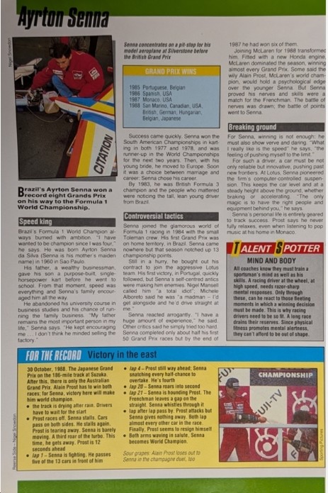AYRTON SENNA HAND SIGNED PICTURE BIO McLAREN HONDA MP4/4 1988